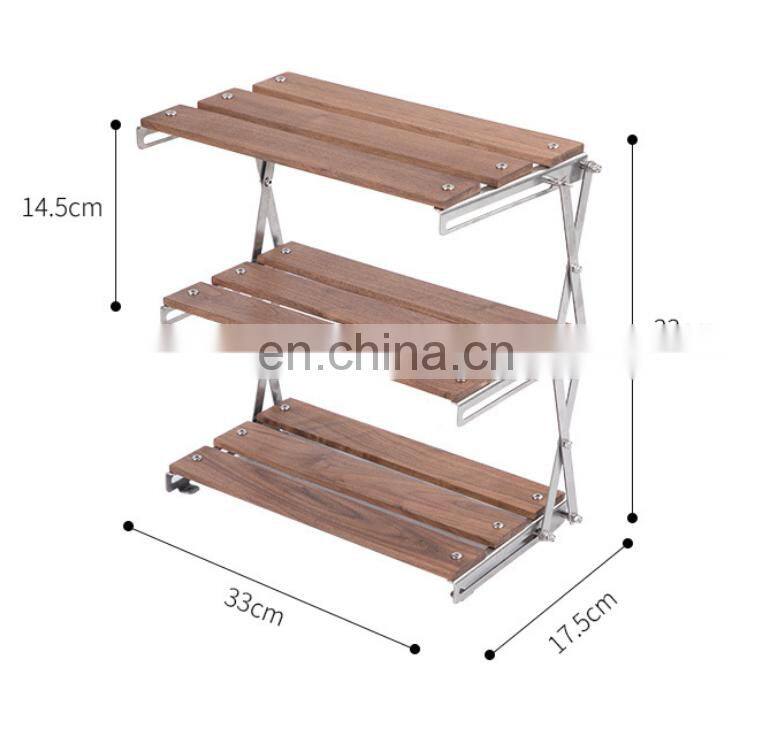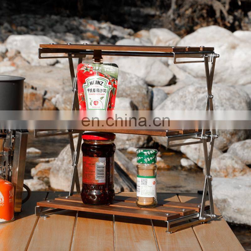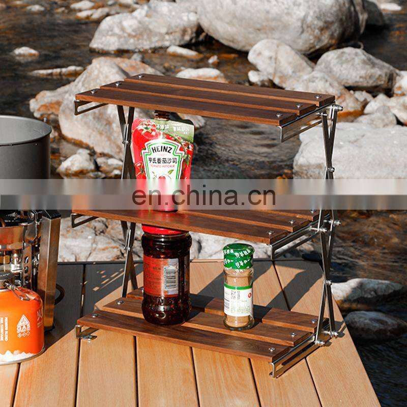 Outdoor Stainless Steel Oak Camping Folding Table Shelving Multifunctional Portable Picnic Outdoor Shelving Commodity Shelf