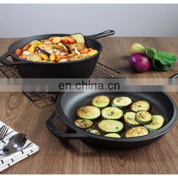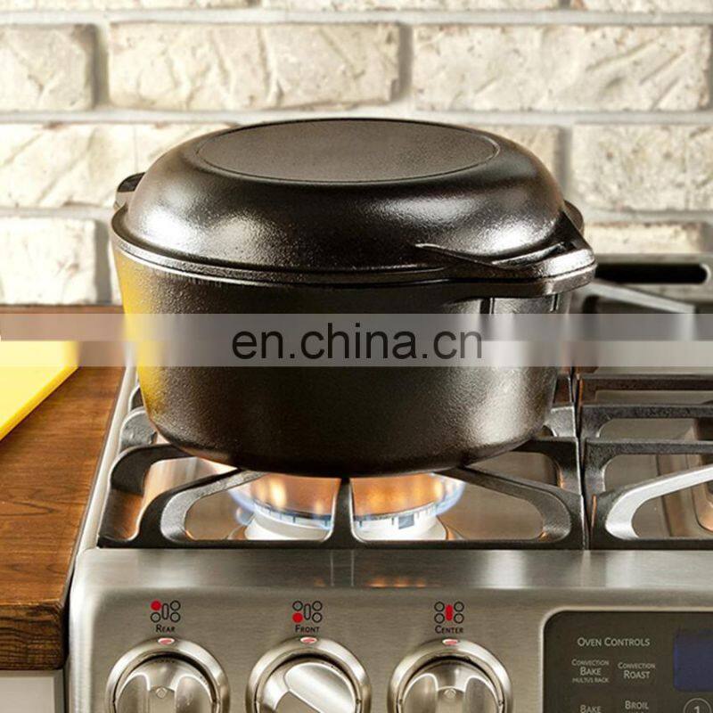 5-QT 2 in 1 Cast Iron Cookware, Double Dutch Oven Casserole Pot