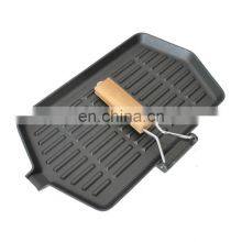 Cast Iron Bbq Griddle Plate Reversible Square Pan With Folding Handle