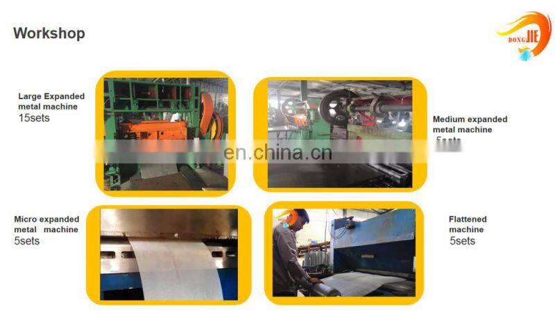 Anping Dongjie Wire Mesh Products Co.,Ltd., located in Anping, China is a specialized manufacturer for the development, design and production of expanded metal mesh, perforated metal mesh, decorative wire mesh and stamping parts for decades. Dongjie has adopted ISO9001:2008 Quality System Certificate, SGS Quality System Certificate and modern management system. As always stuck into "Quality Proves Strength, Details Reach to Success", Dongjie achieves highly acclaim in the old and new customers.