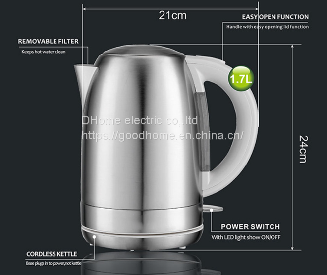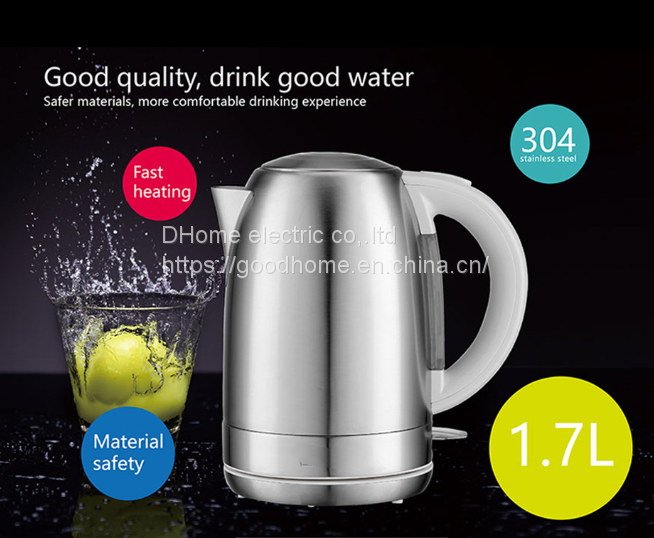 1.7L capacity, 304 stainless steel body and stainless steel base plastic handle, visible water window