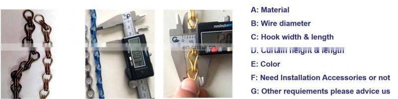 In addition, it is available in various colors, you can choose any color according to your architecture style. Due to these advantages, double hook decorative chain curtain is suitable for residences, hotels, restaurants, shopping center and other places.
