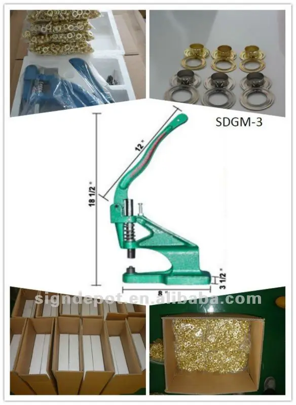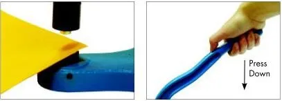 Firmly press down on the Handle.(you will have to exert some force in order to fully pierce the material and bond the grommets.)