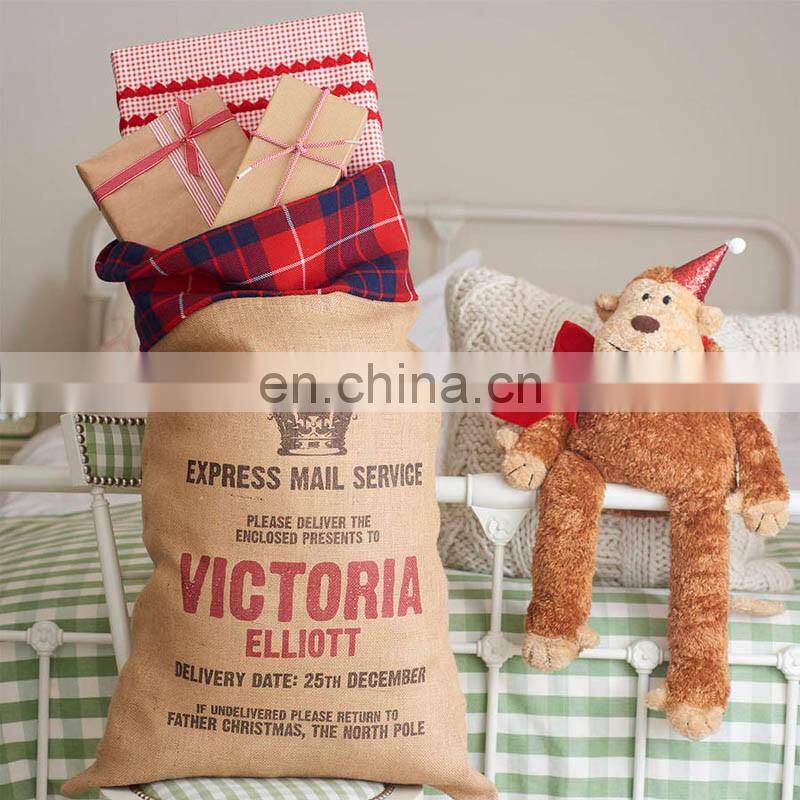 Customs Laminated Christmas Santa Sack Jute Gunny Sack Gift Burlap Santa Sack