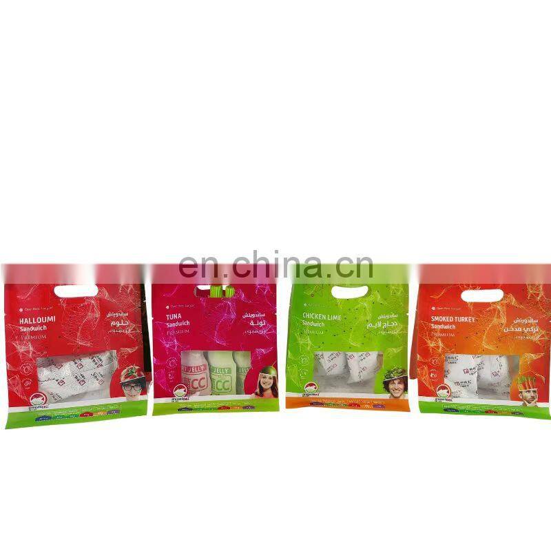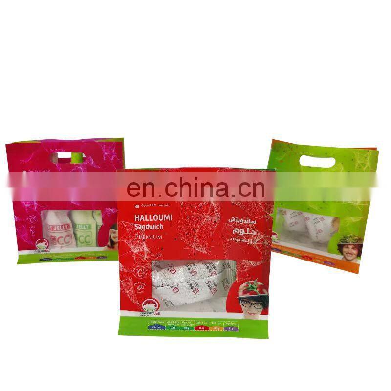 Wholesale Custom Printing Bag Matte Square Flat Bottom Pouch With Handle Packaging Pouch for Salad and Vegetable