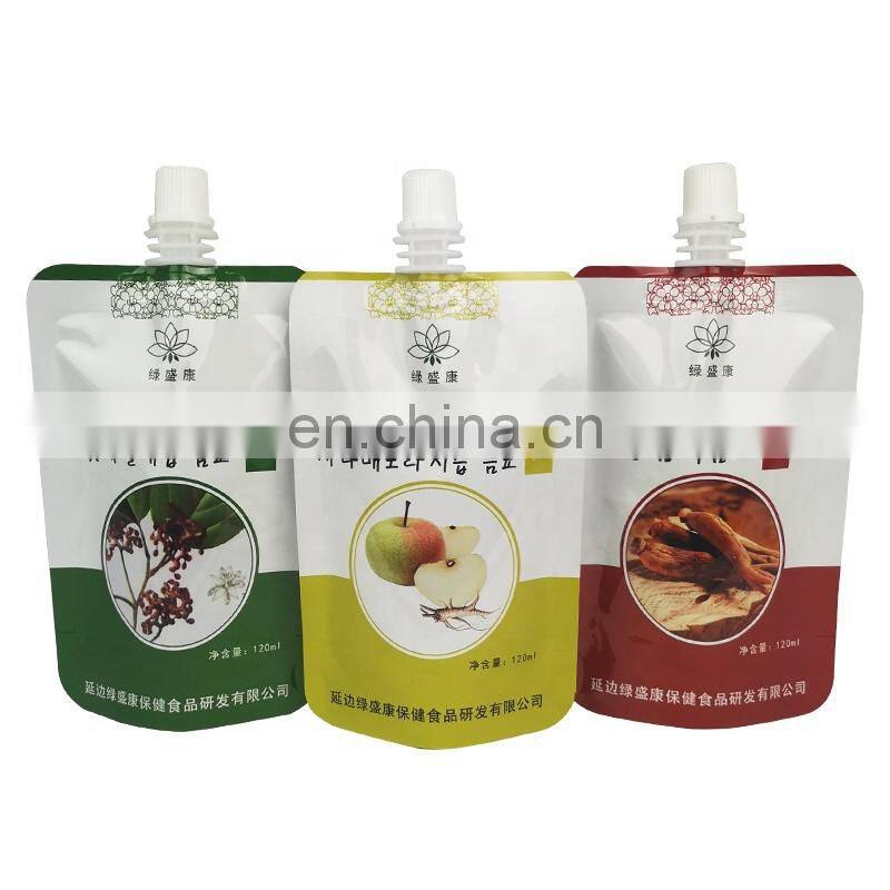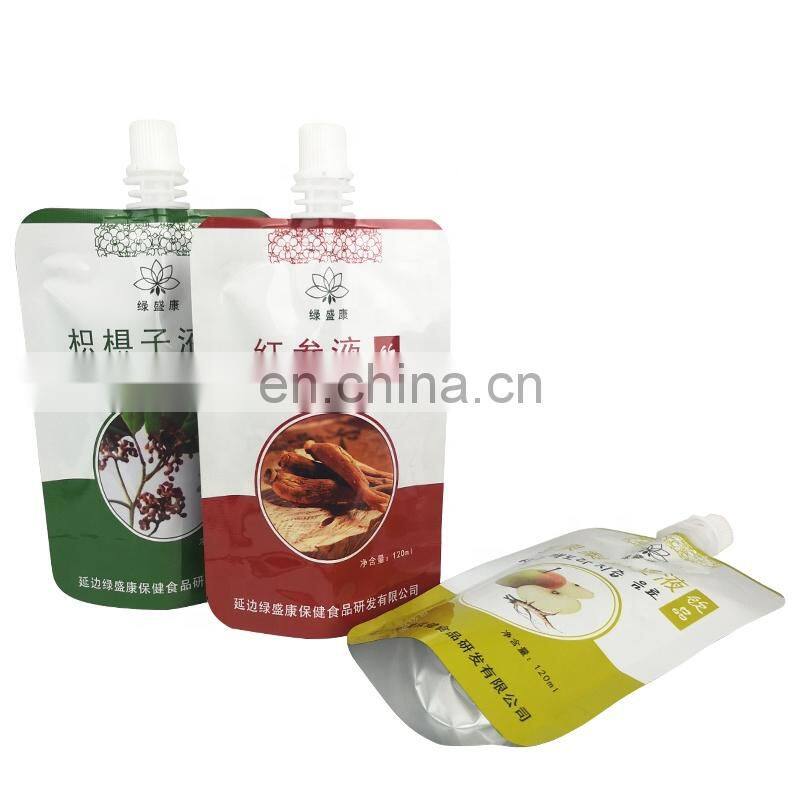 item | Custom print bolsa de jugo 120ml stand up liquid spout pouches food grade aluminum foil spout doypack for fruit juice packaging |