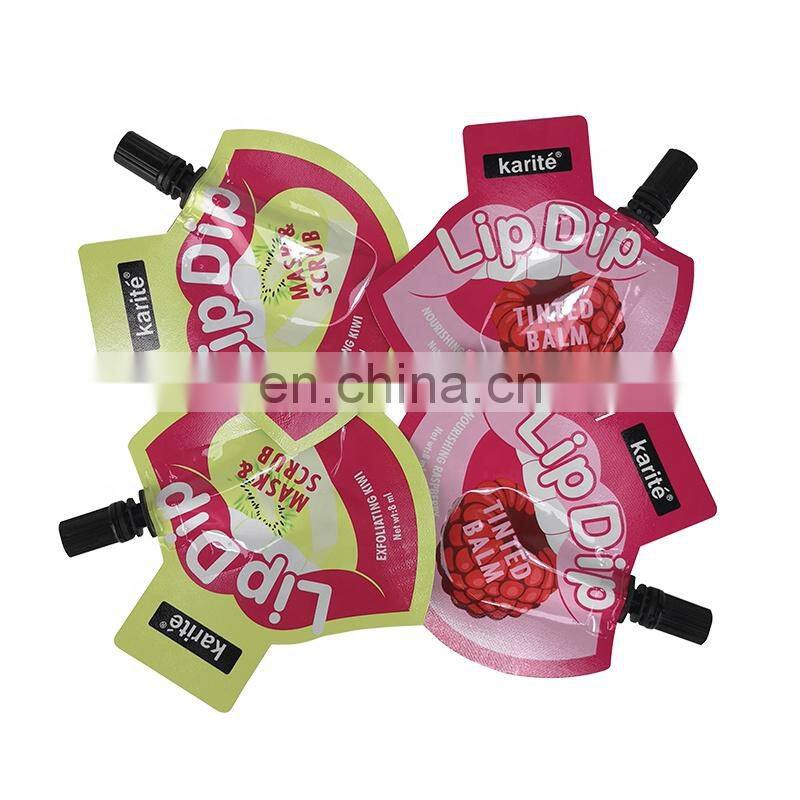Custom Cosmetic Foil Packaging Pouch Bag Disposable Plastic Cosmetic Sachet Package Lip Shape Spout Pouch for Lipstick Packaging