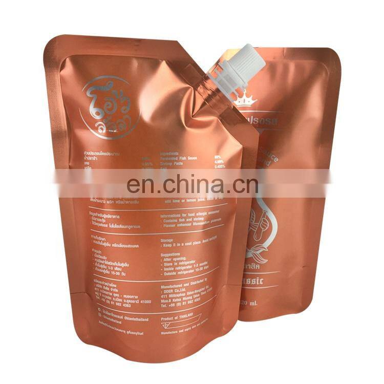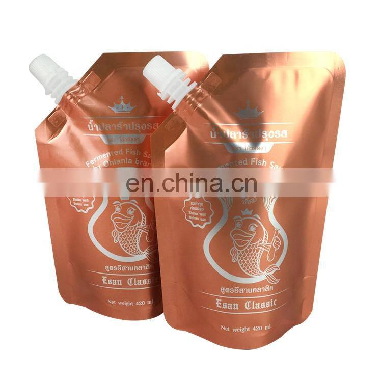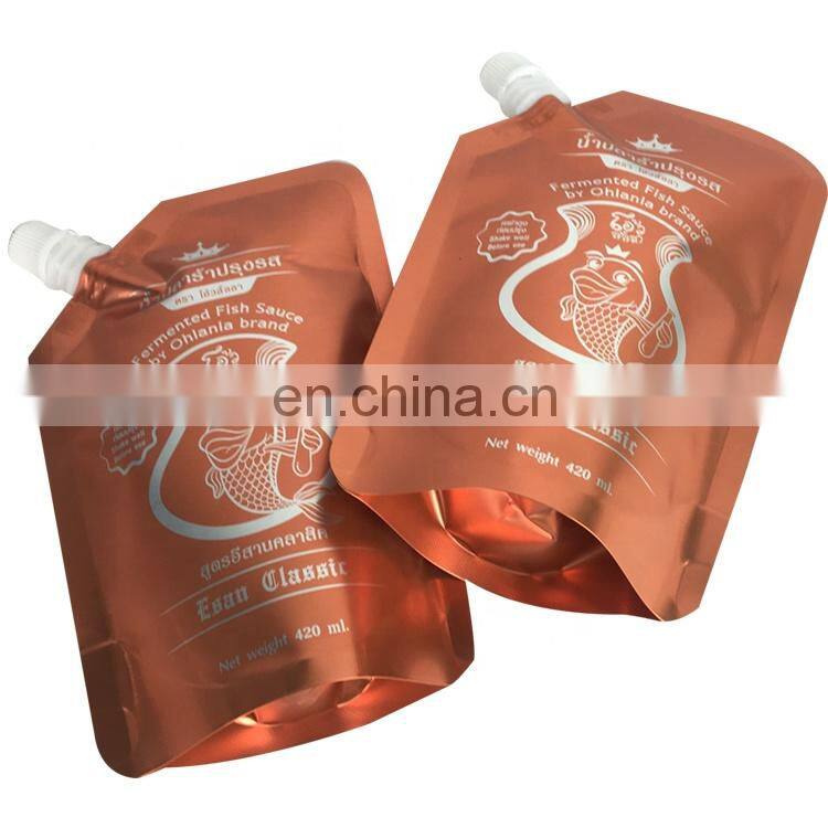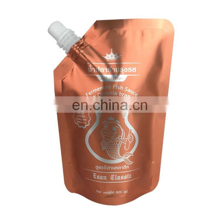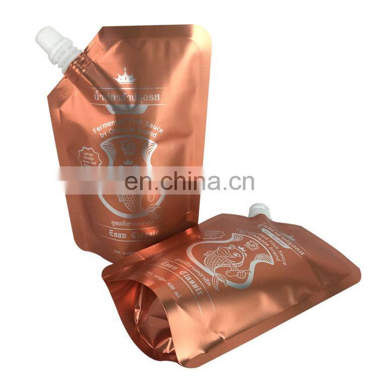 Home > Products > Spout pouch > Custom Printing Fish Soy Sauce Container Food Retort Pouch Aluminum Foil Golden Packaging Bag Stand up Pouch With Spout