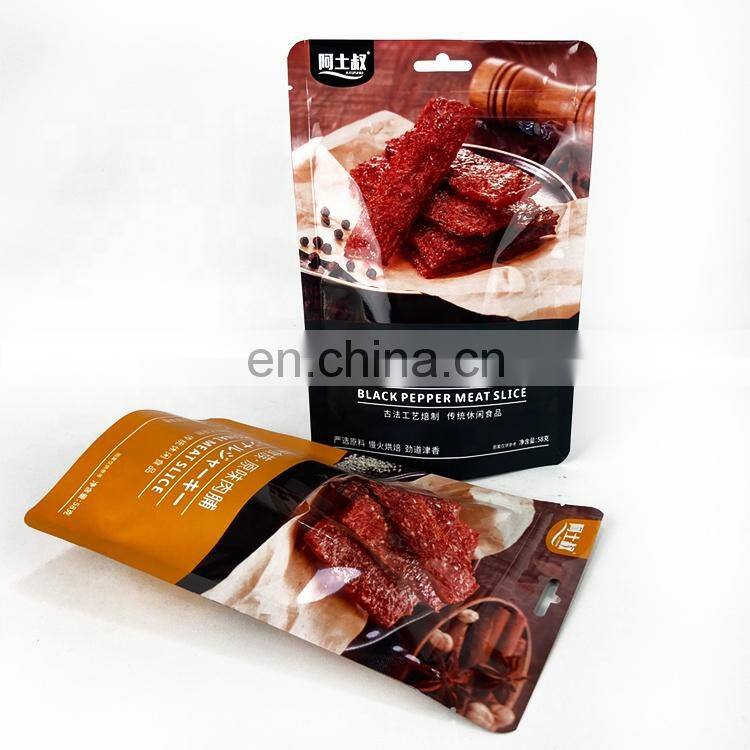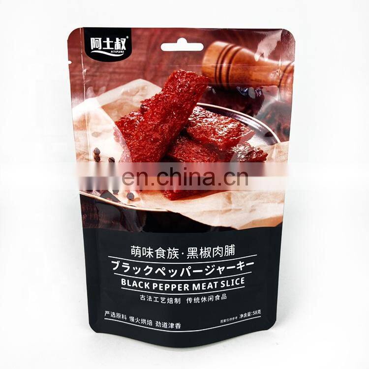 Custom Printed Beef Jerky Black Stand up Pouches With Zipper for Food Packaging