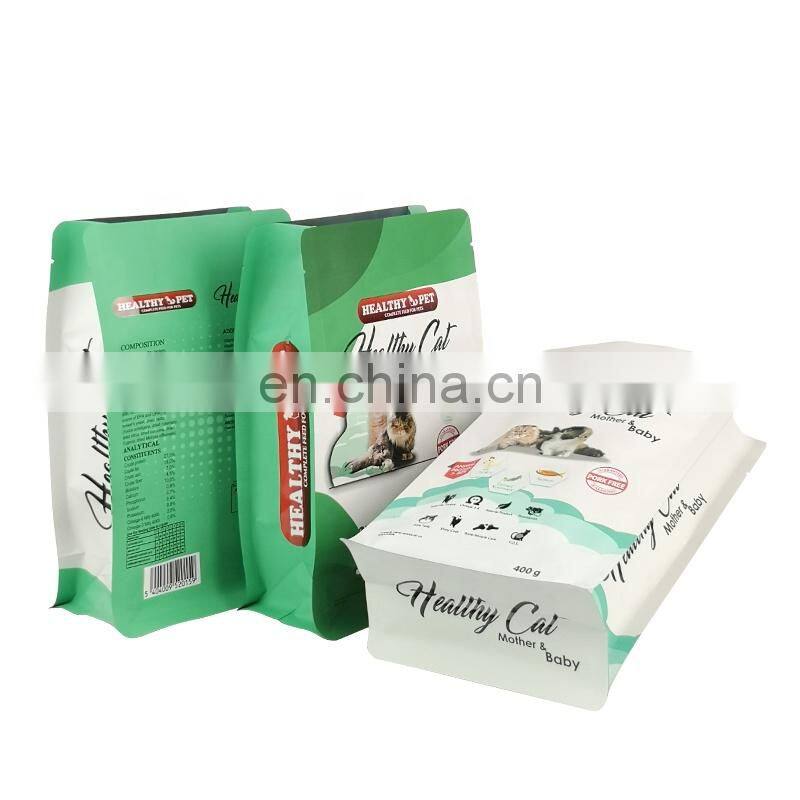 item | 400g cat food zipper stand up pouches custom printed flat bottom pet dog food packaging bag |