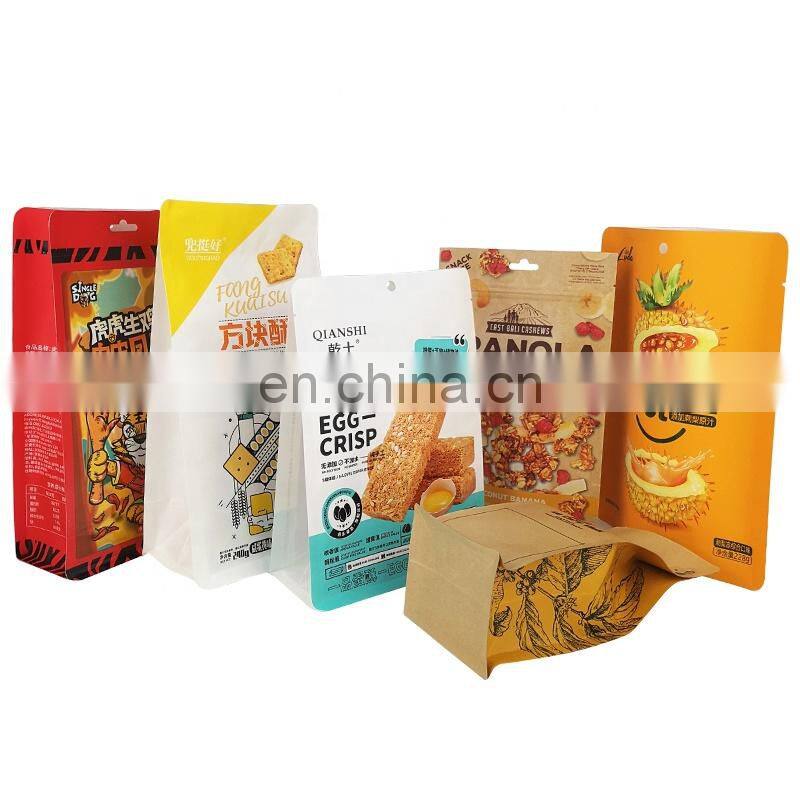 Wholesale Custom Printed Stand up Pouch Brown Kraft Zipper Paper Pouch for Dried Fruit Nuts Bag