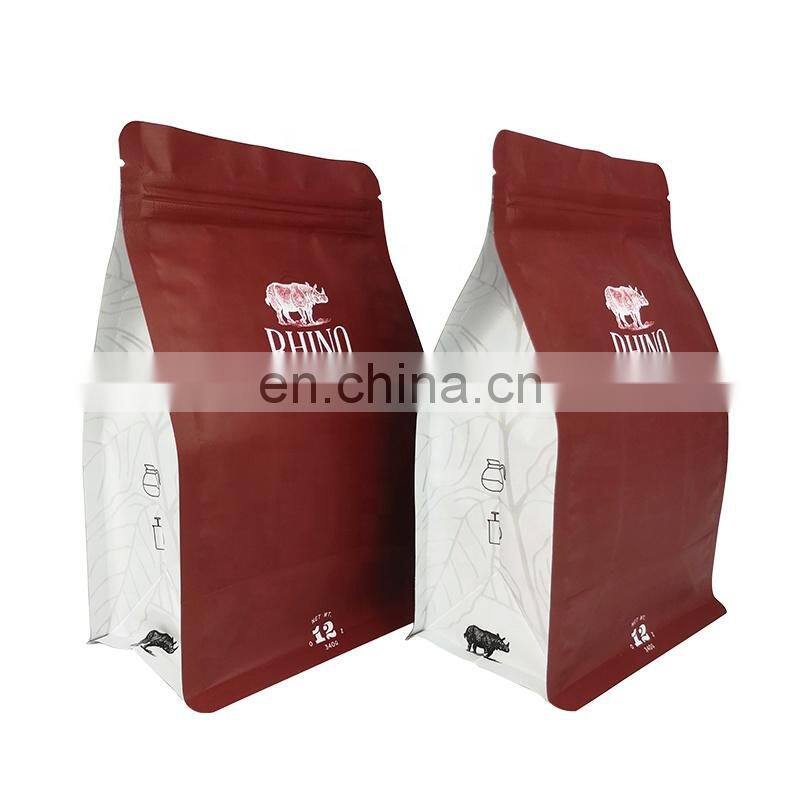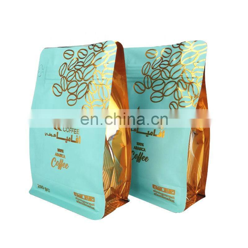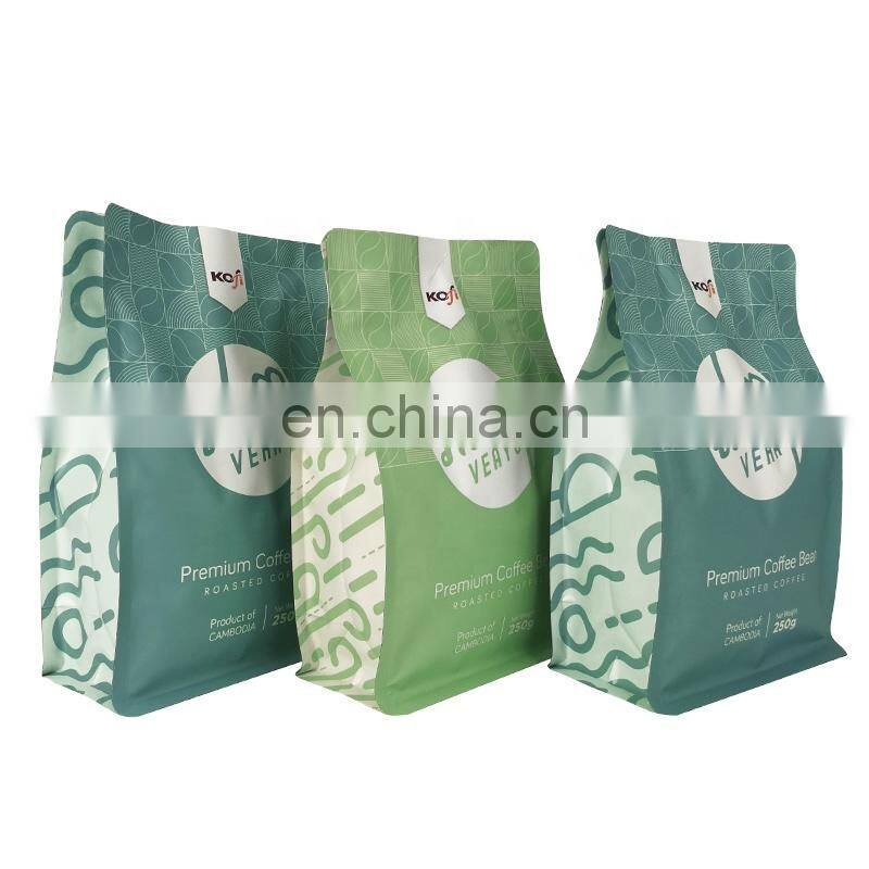 Plastic Custom Zip Lock Coffee Bean Packaging Bag Stand up Flat Bottom Pouch With Valve
