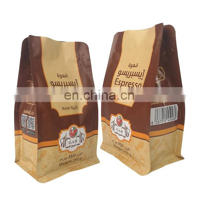 Food Grade Plastic Zipper Coffee Packing Pouches Side Gusset Flat Bottom Mylar Bags Coffee Bean Packaging