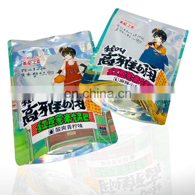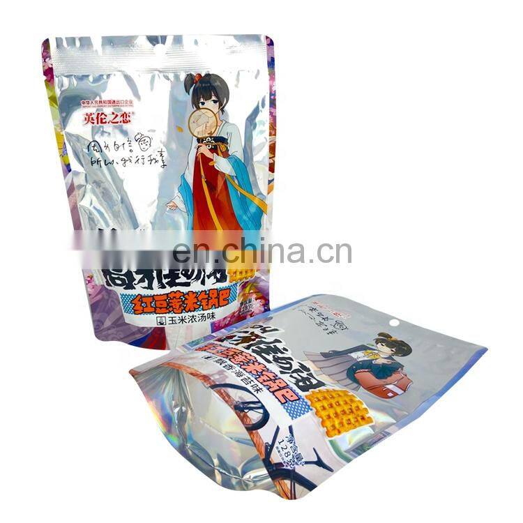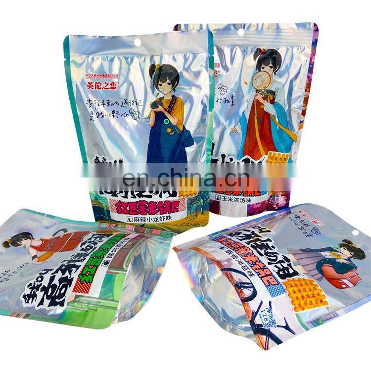 Custom Printed Crispy Snack Food Aluminum Foil Holographic Packaging Stand up Zipper Bag