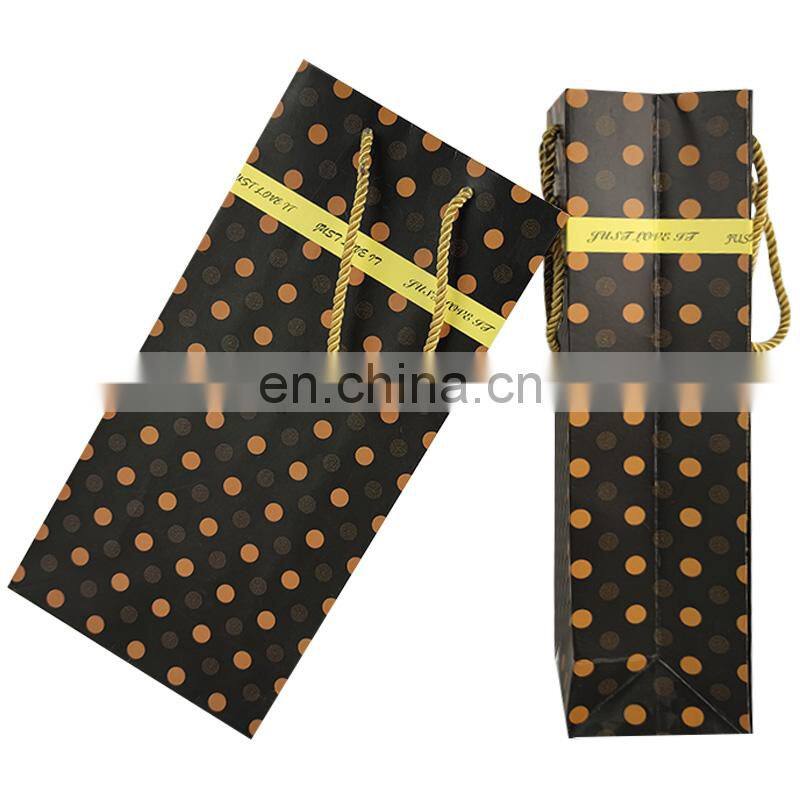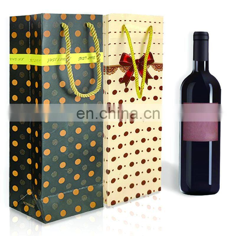 Luxury Wholesale Art Paper Custom Made Print Logo White Kraft Coloured Paper Wine Bottle Packaging Bag With Handle