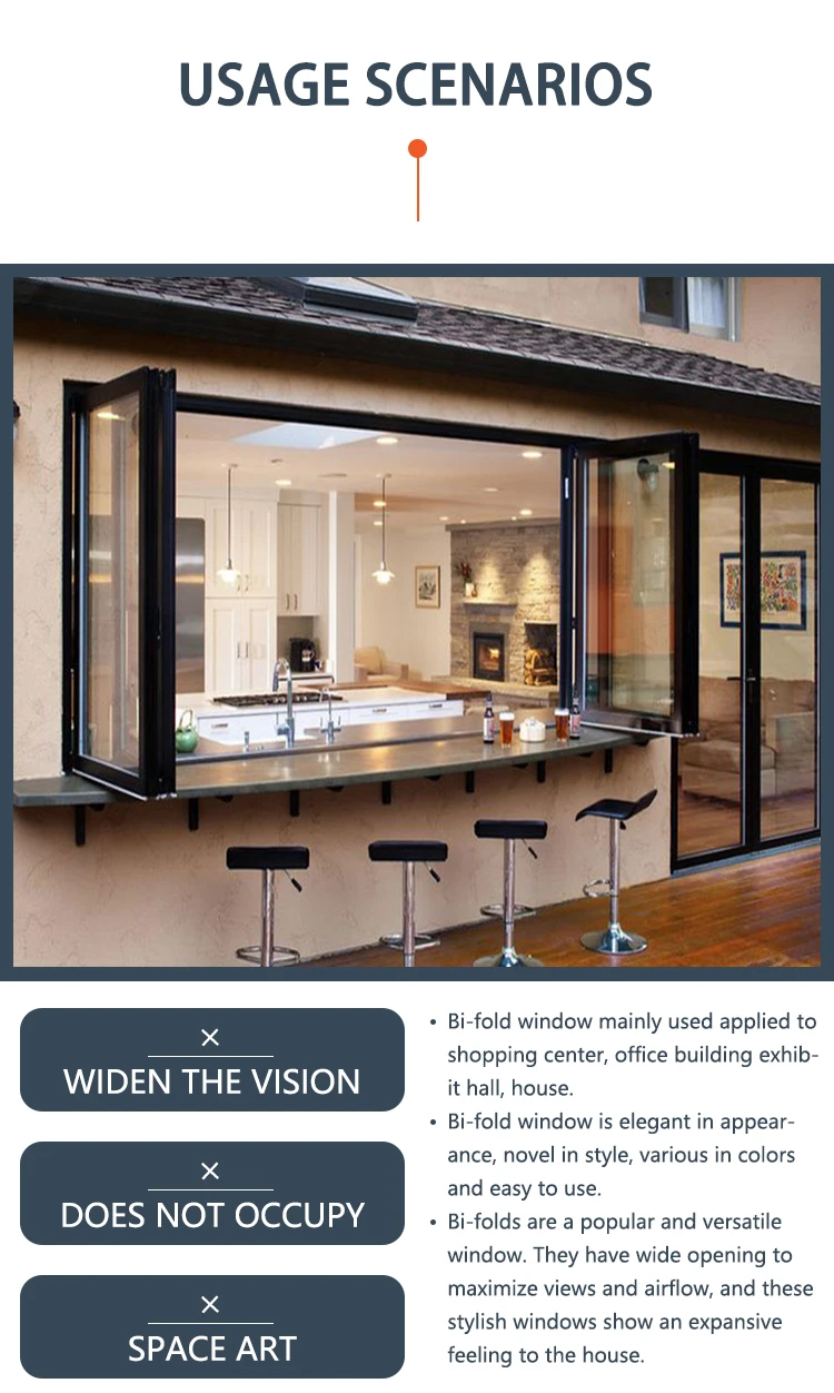 China Factory Folding Steel Window Design bi Fold Kitchen Aluminum Windows