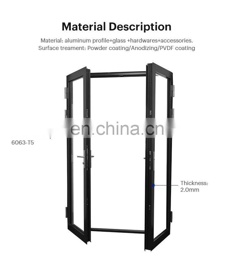 Export Standard Modern French Residential Large Aluminum Double Pane Patio Swing Doors With Grid