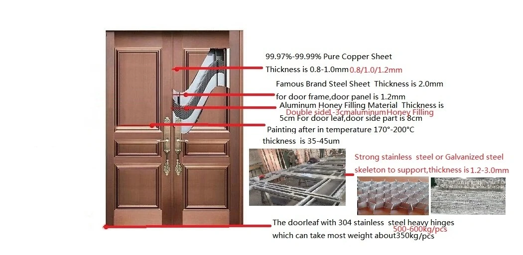 China Factory Supply Exterior/Interior Steel Security Copper Door
