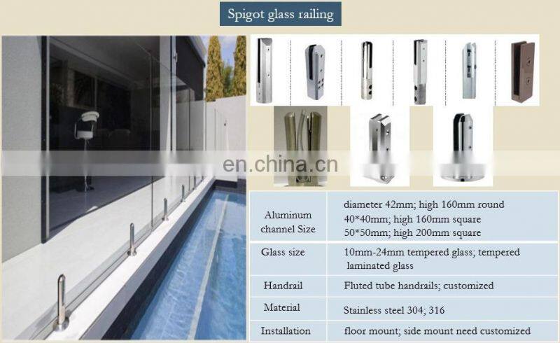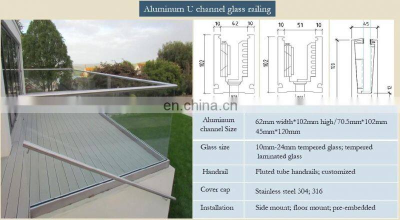 Detail Size | Height:1000mm,1050mm,1067mm,1200mm Top handrail:40*40/50*50/63*63mm Glass thickness:8mm/10mm/12mm/6+1.14+6mm laminated glass | |||