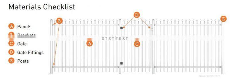 Used Welded Galvanized Black Powder Coating Wrought Iron Fence /Ranch /Garden/Pool Steel Fencing