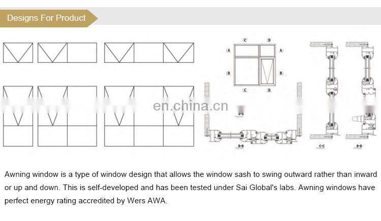 AS2047 CE Drop Arm Window Awning Double Tempered Frosted Glass Awning Window With Stainless Steel Mosquito Screen