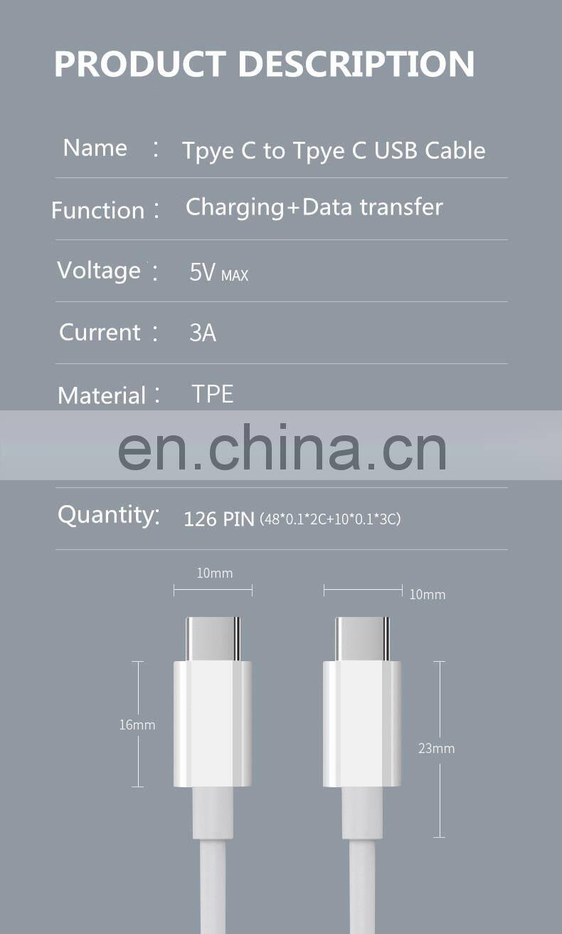 Factory PD Quick Charging 2M Type C to Type C 3A Fast Charging Cable for Laptop and Mobile Phone usb Cable