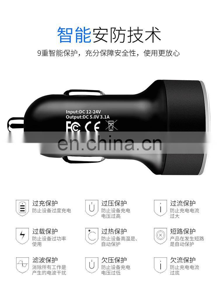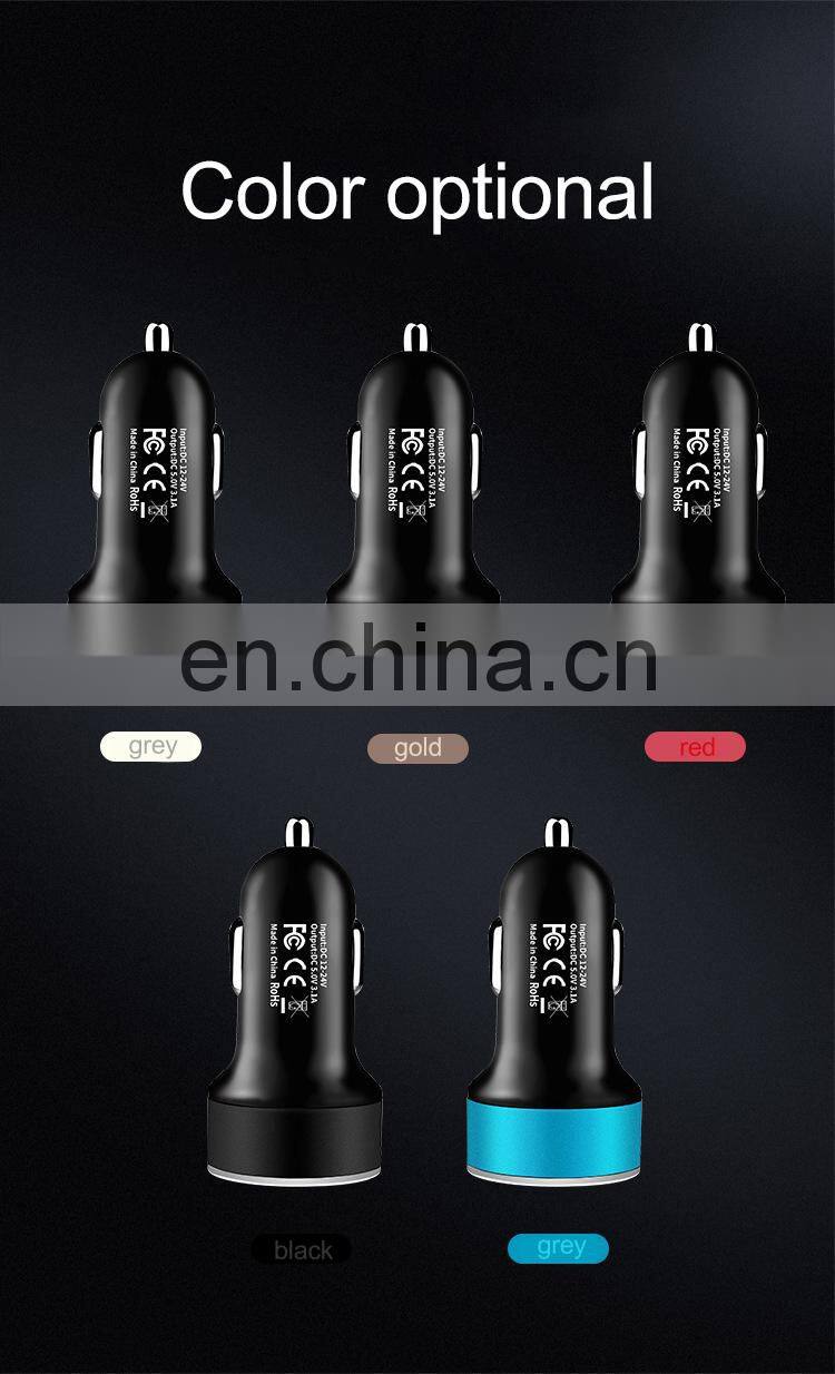Wholesale Metal Fast Charger 3.1A USB Adapter Dual 2 Port Universal Mobile Phone USB Qc3.0 Car Charger for IPh