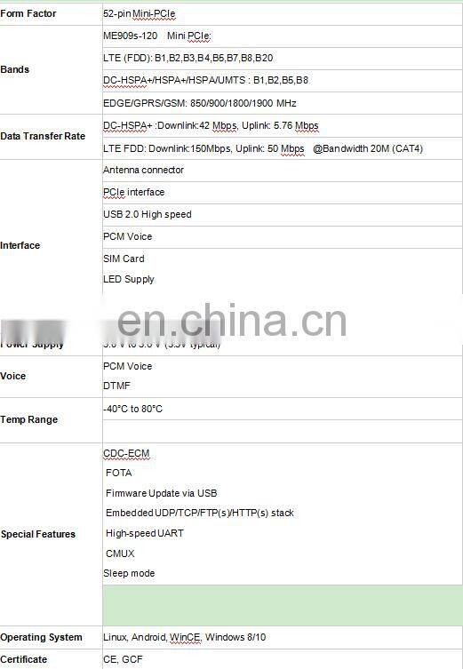 Home > Products > Wireless Module > LTE B2B Module ME909s-120 PCIE