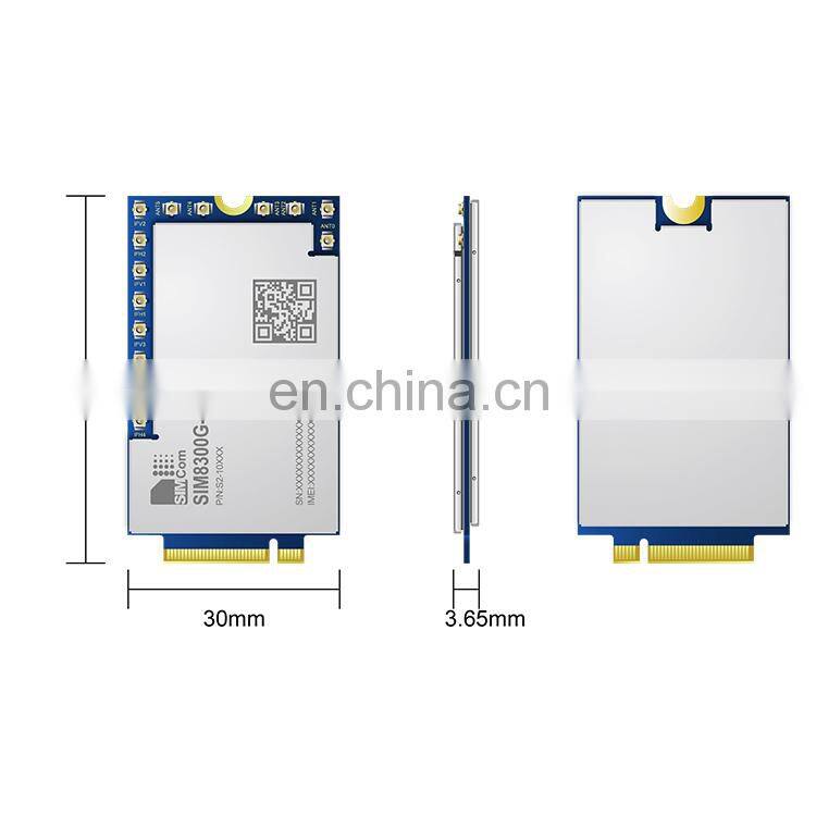 SIM8300G-M2 adopts M.2 form factor, TYPE 3052-D3-B. AT commands of SIM8300G-M2 are compatible with SIM7912G/SIM8200-M2 series modules. This also minimizes the investments of customers and enables a short time-to-market.