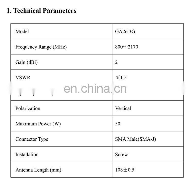 Home > Products > GSM/LTE/WiFi Antenna > 10.8cm 2dBi SMA Male Connector 800~2170MHz 3G Antenna