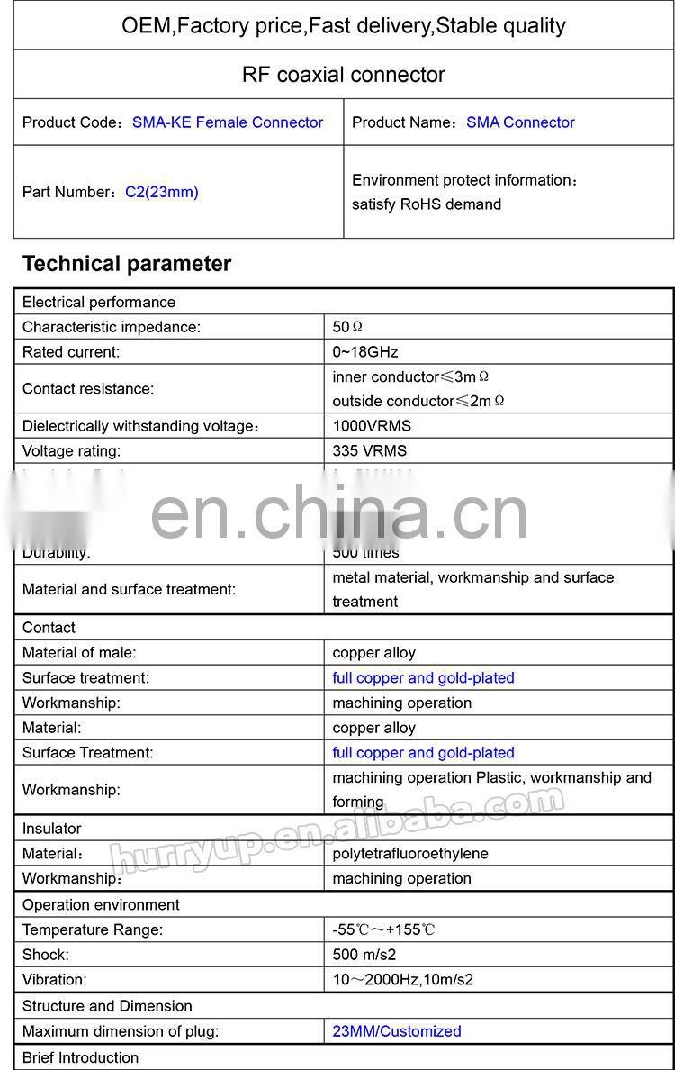 Home > Products > Cable Assemblies > 23mm RF Coaxial SMA Plug, SMA-KE SMA Female PCB Antenna Connector