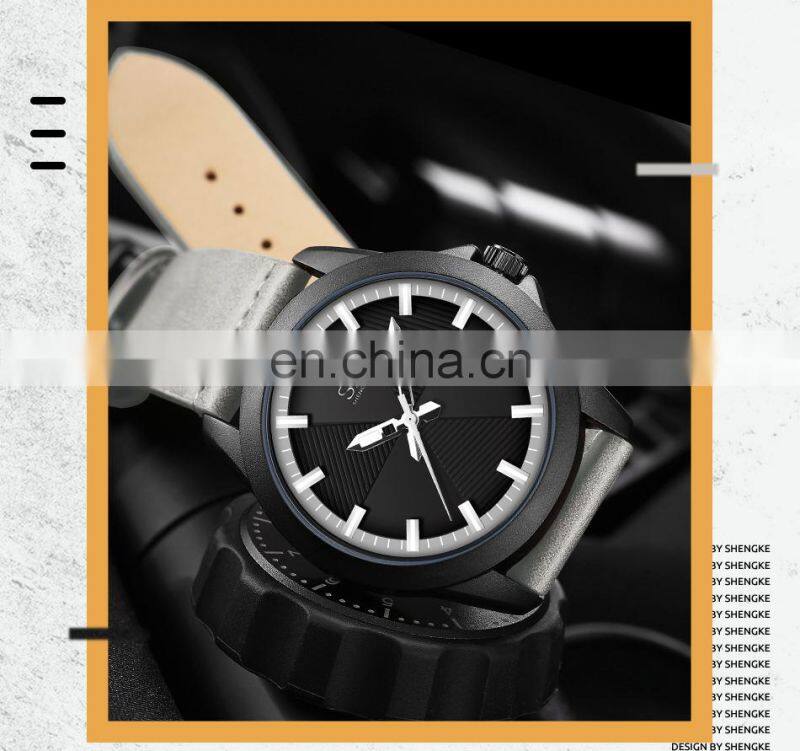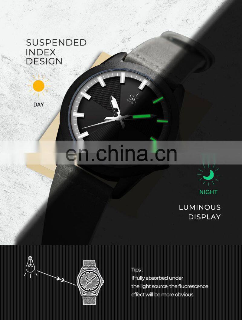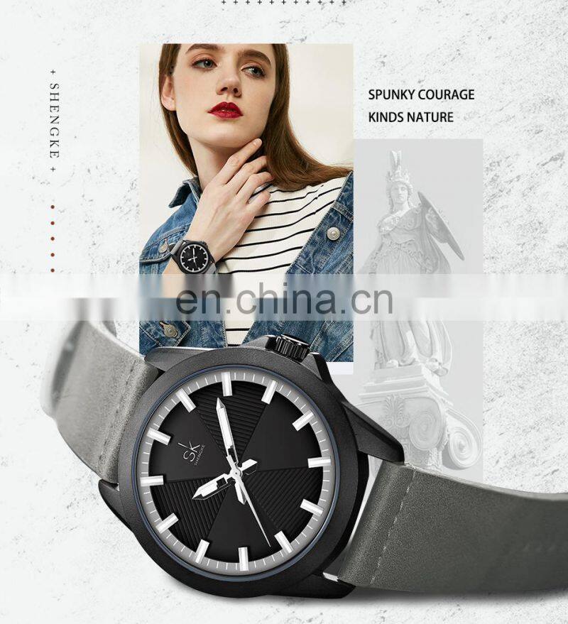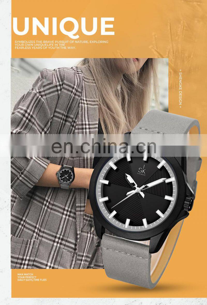 SHENGKE Unisex Business Watches K0120G Luminous Pointer Watch PU Leather Quartz Sports Wristwatches Relogio Masculino