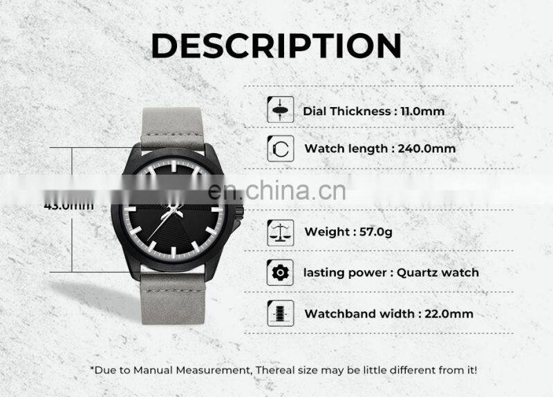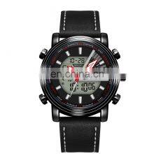 SINOBI Casual Men's Watch Luminous Display High Quality Leather Band Quartz Watches Black Matte Watch S9804G