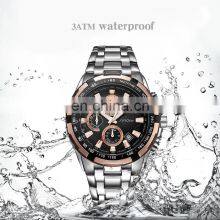 SINOBI Charming Luminous Watch For Man Full Stainless Steel Band Quartz Movement Wrist Watch Chronograph WatchS9720G