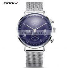 SINOBI Chronograph Men's Watch Cool Wristwatch For Man Steel Milan Mesh Band Watch Blind Shipping Watches S9710G