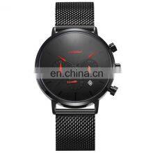 SINOBI Cool Chronograph Men's Watch Steel Milan Mesh Band Wristwatch Sub-dia Watches Black Watch S9710G