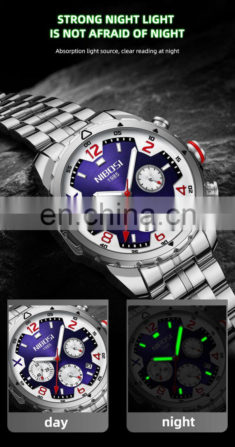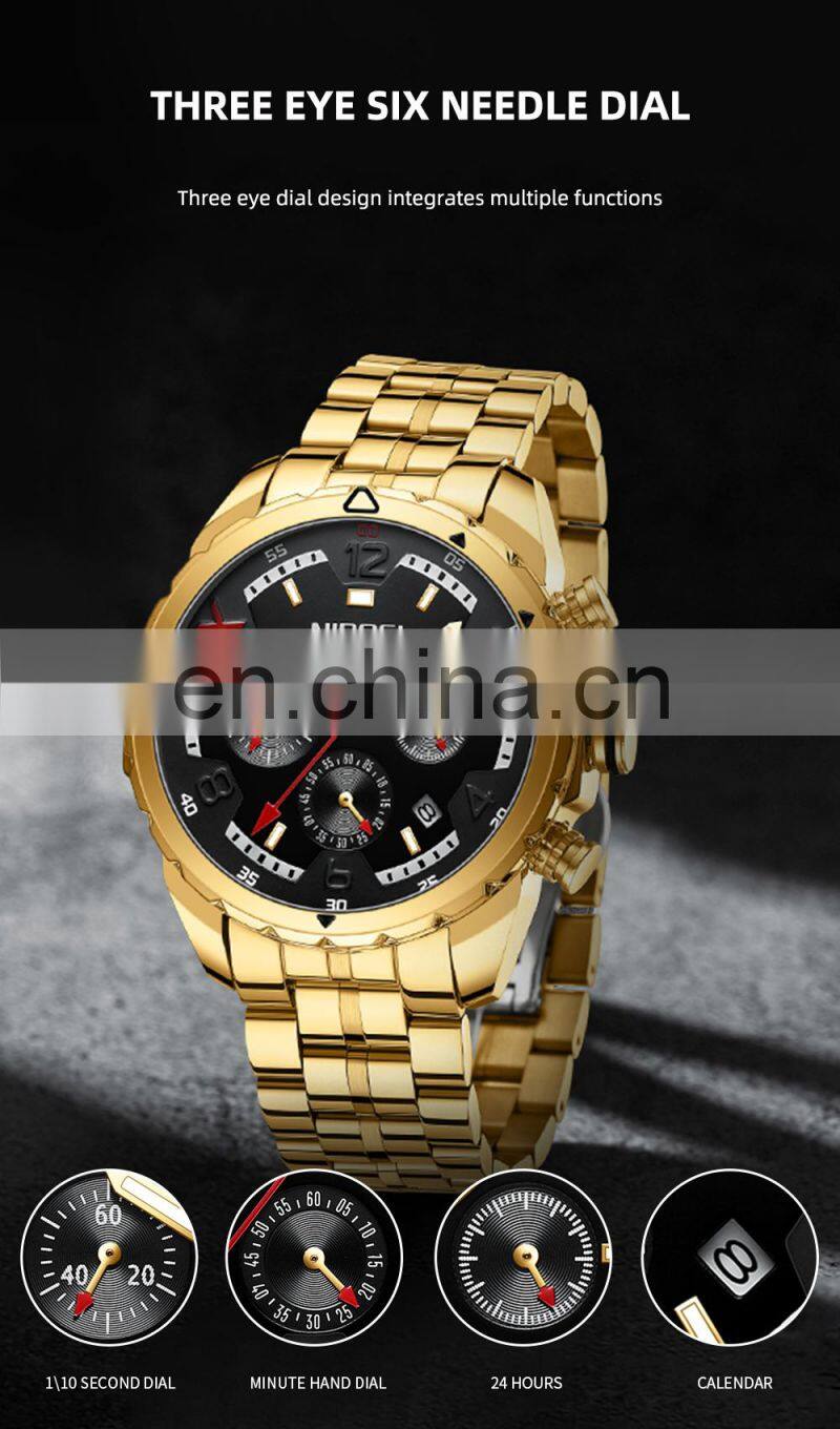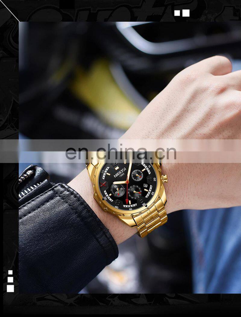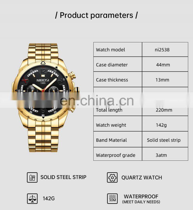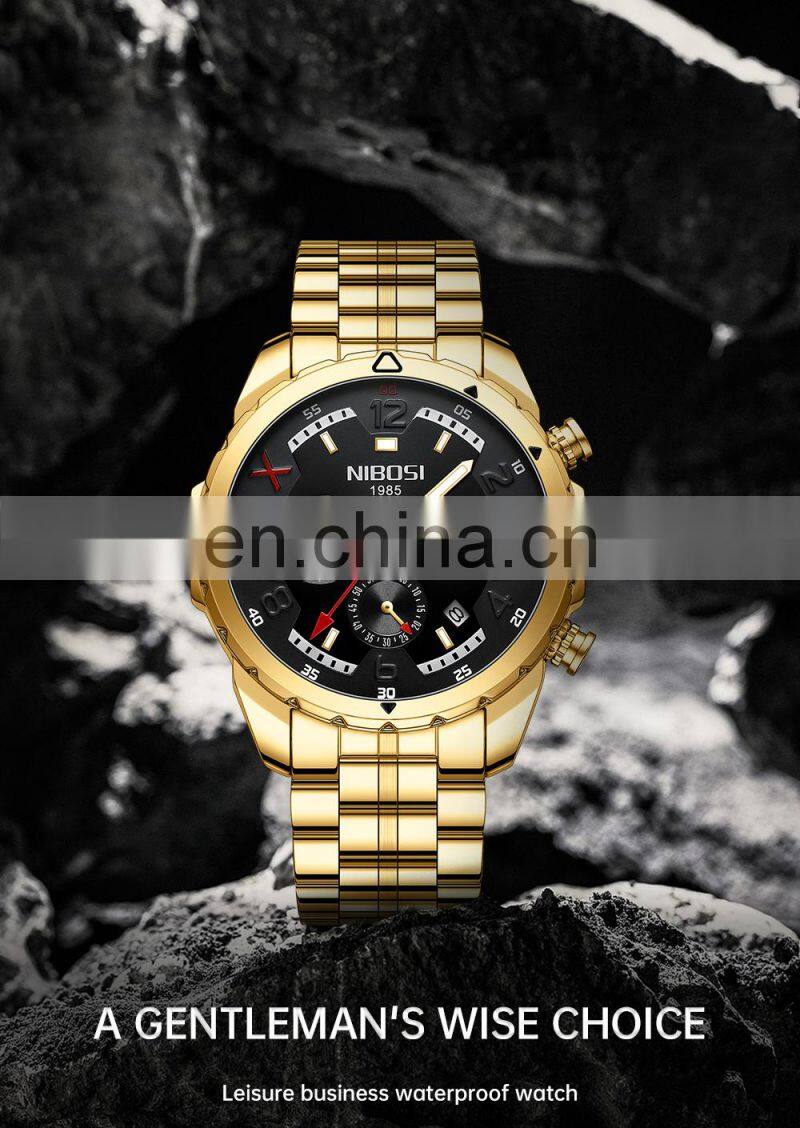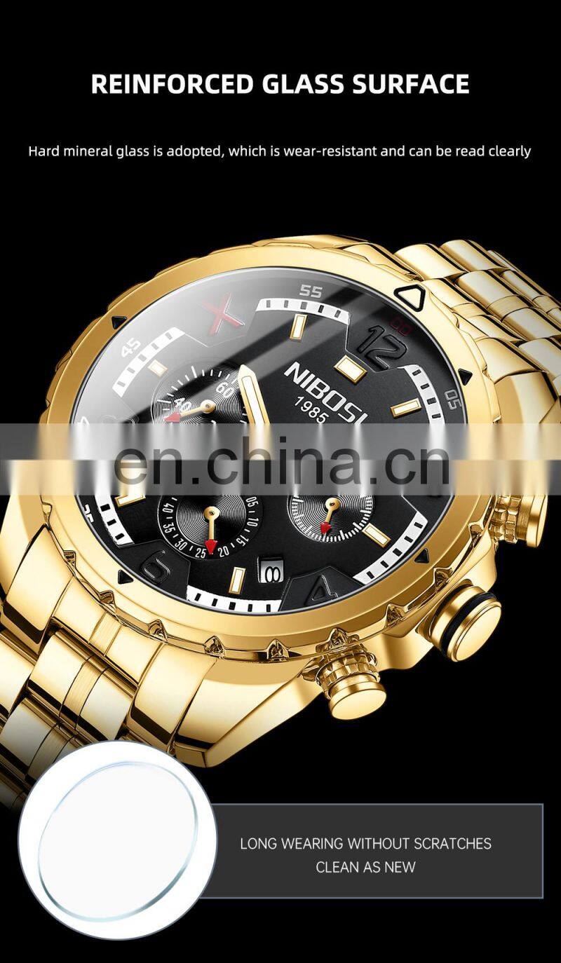 NIBOSI New Brand Quartz Watch Men Sport Watches Men Steel Band Military Clock Waterproof Gold Wrist Mens Watch Relogio Masculino