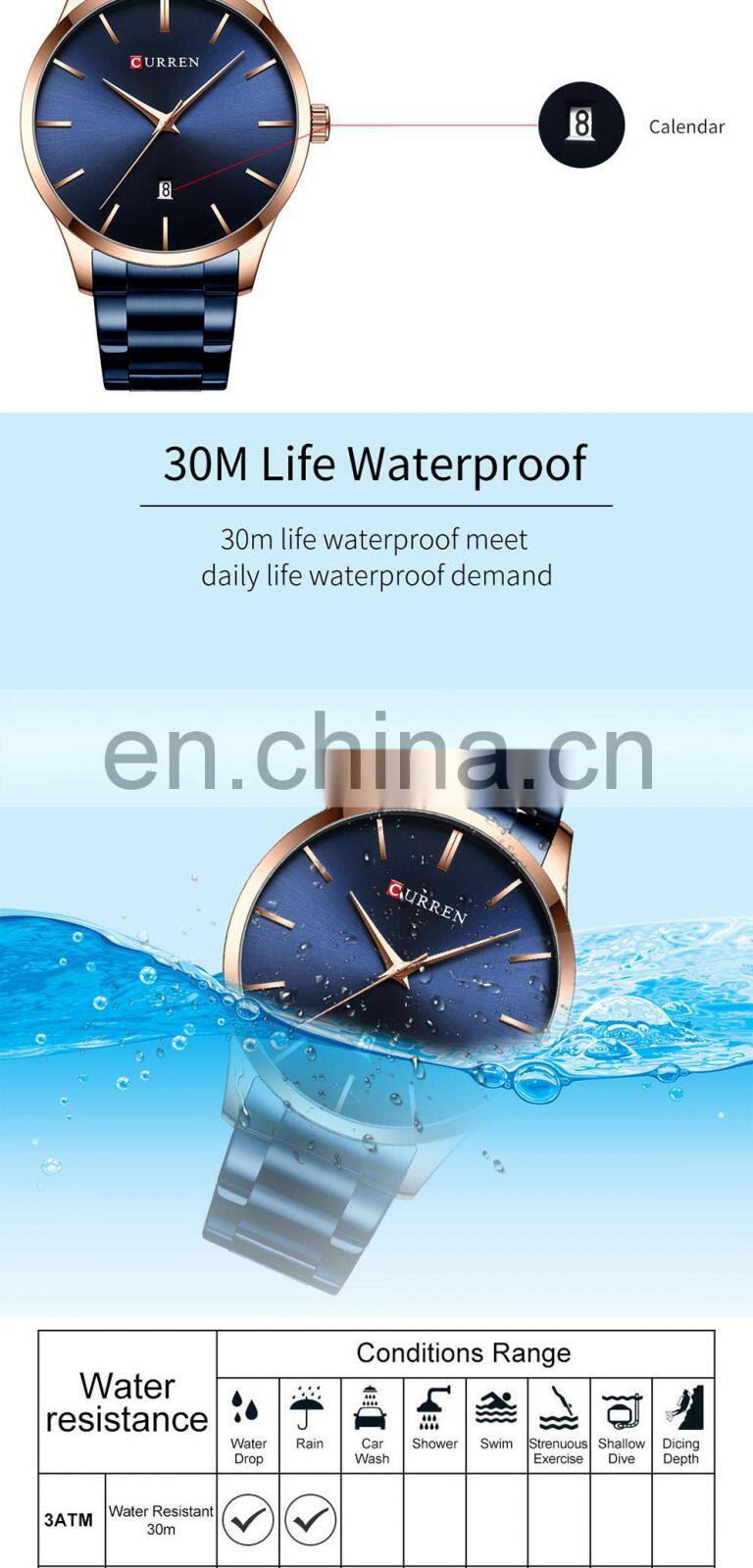 CURREN Hot Selling Waterproof Quartz Watch Business Men Watch Leisure Steel Belt Watch