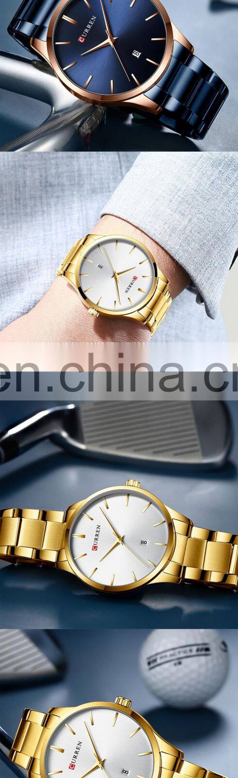 CURREN Brand Stainless Steel Waterproof Quartz Watch Business Calendar Men's Fashion Gold Watch