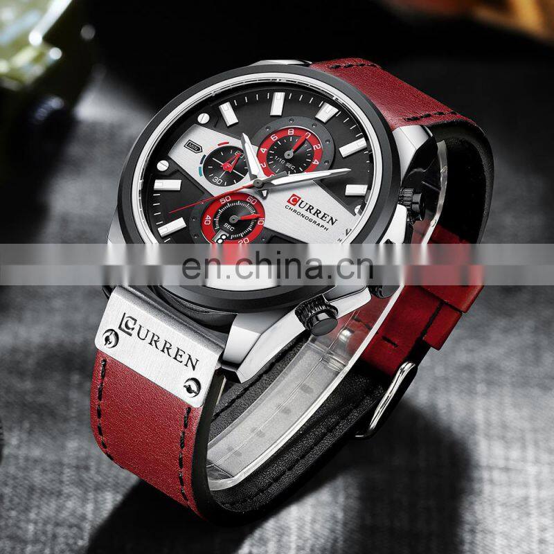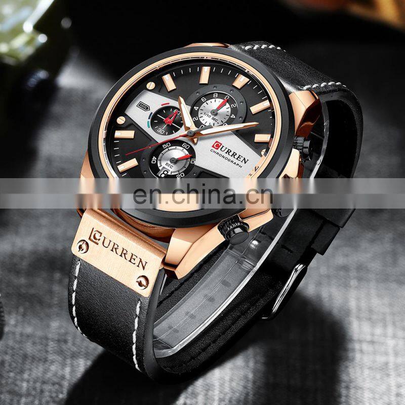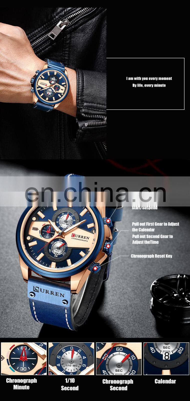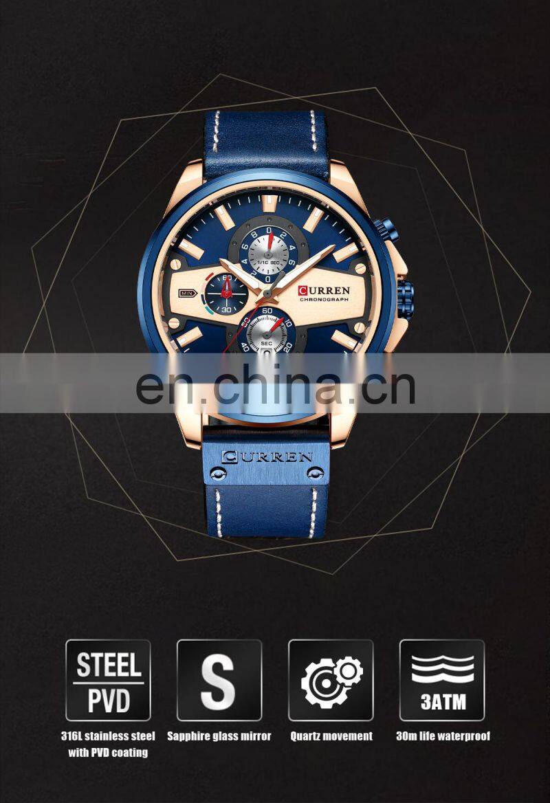 CURREN 8314 Waterproof Sport Montre Homme Chronograph Quartz Military Genuine Leather Men Wrist Watches