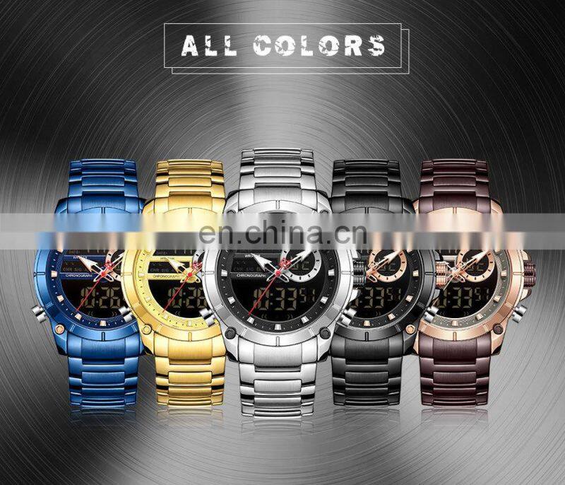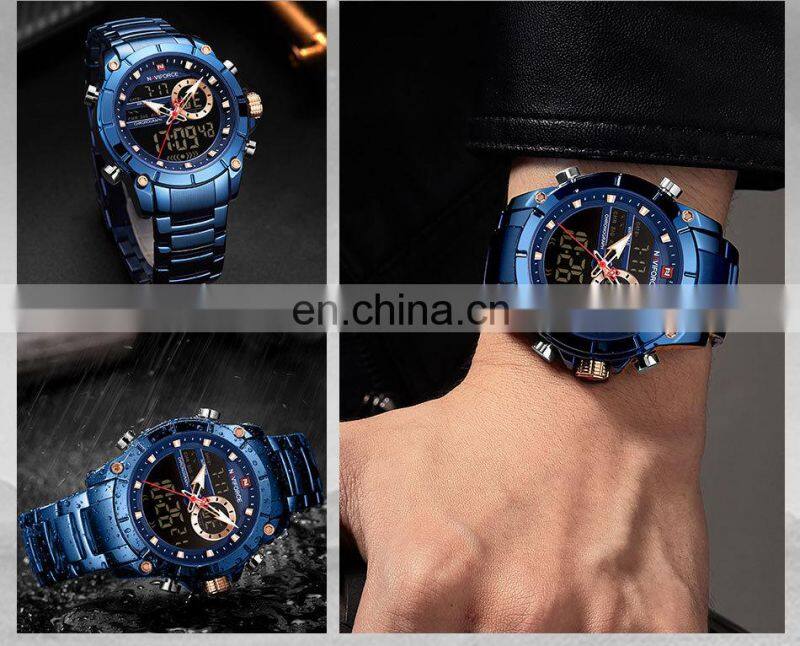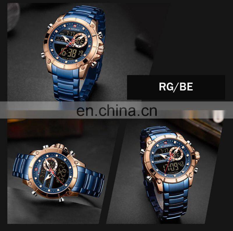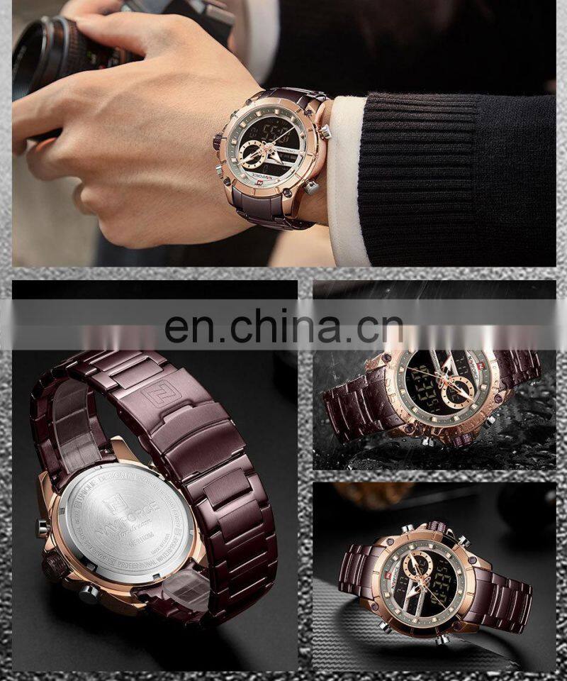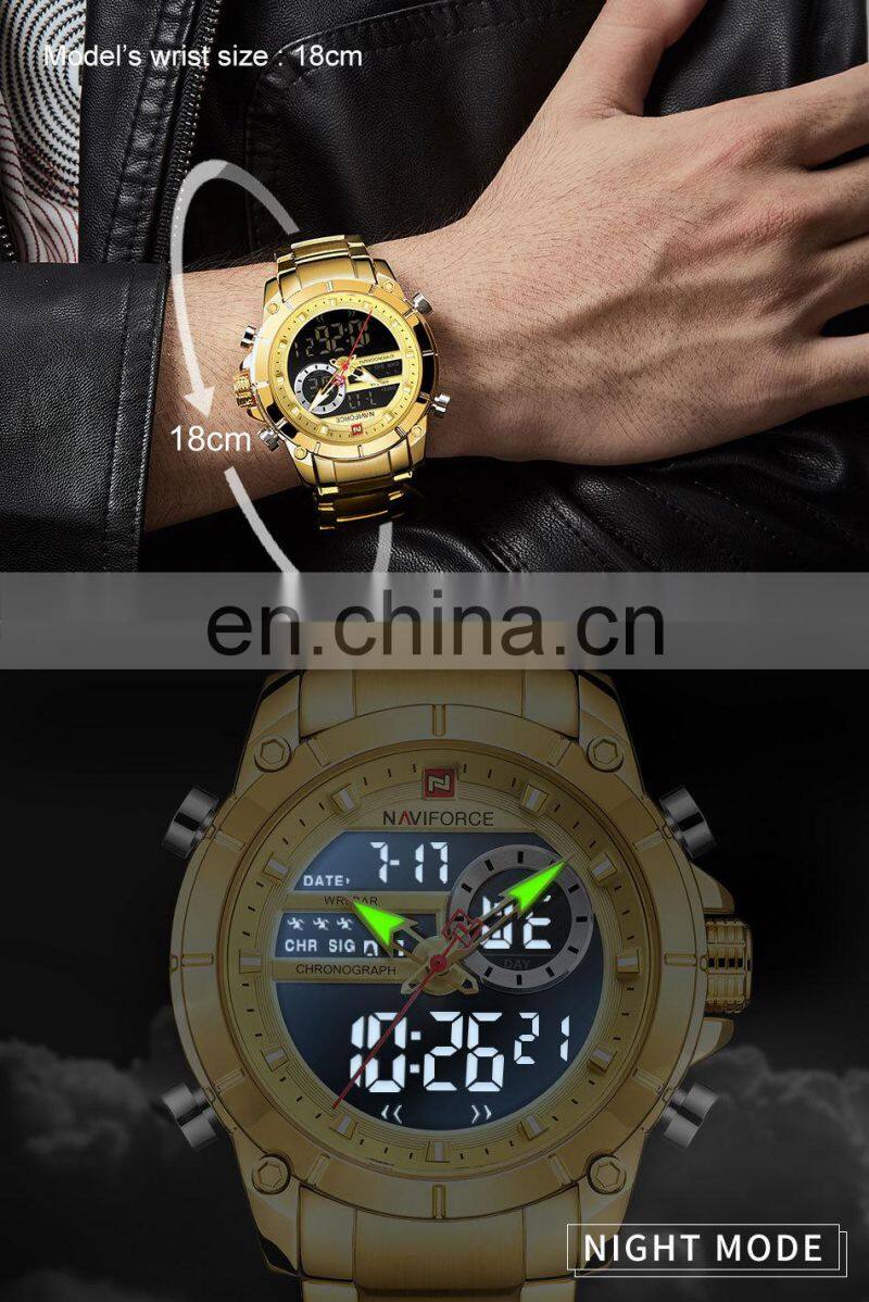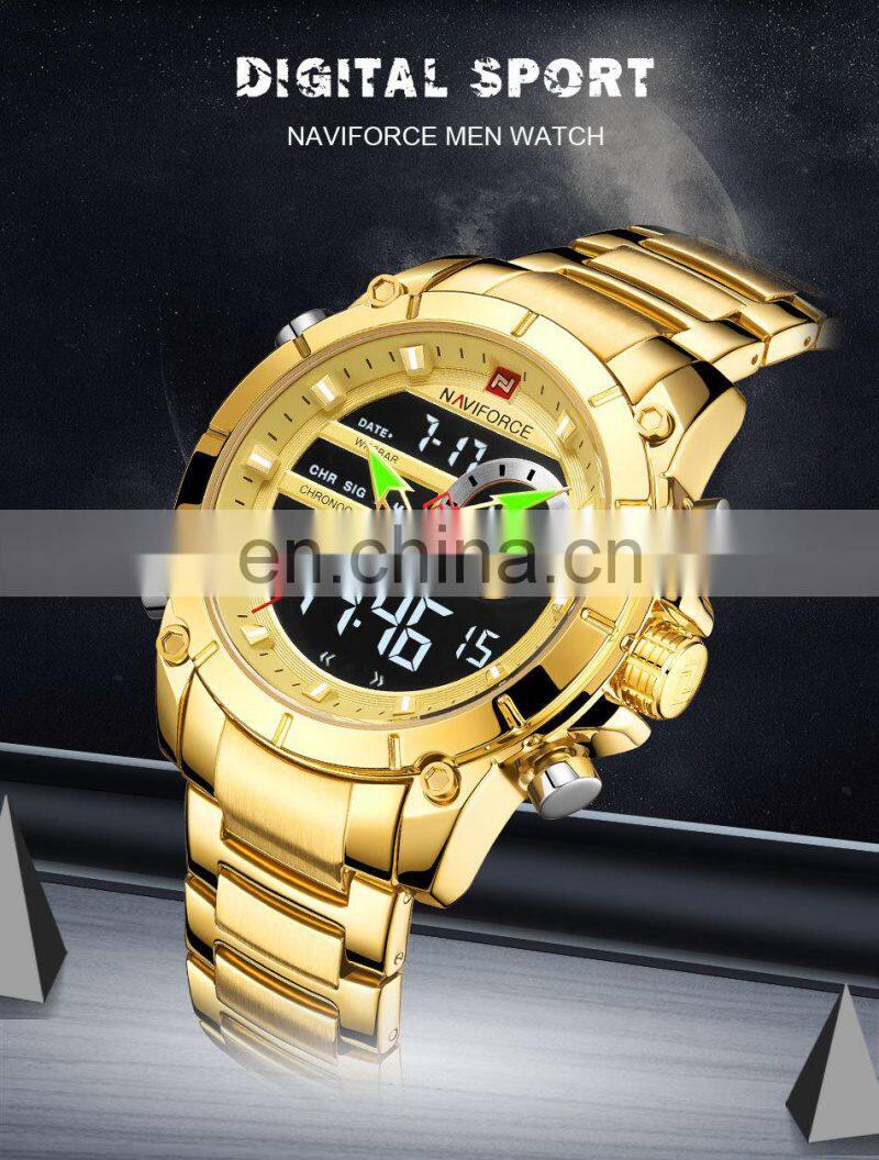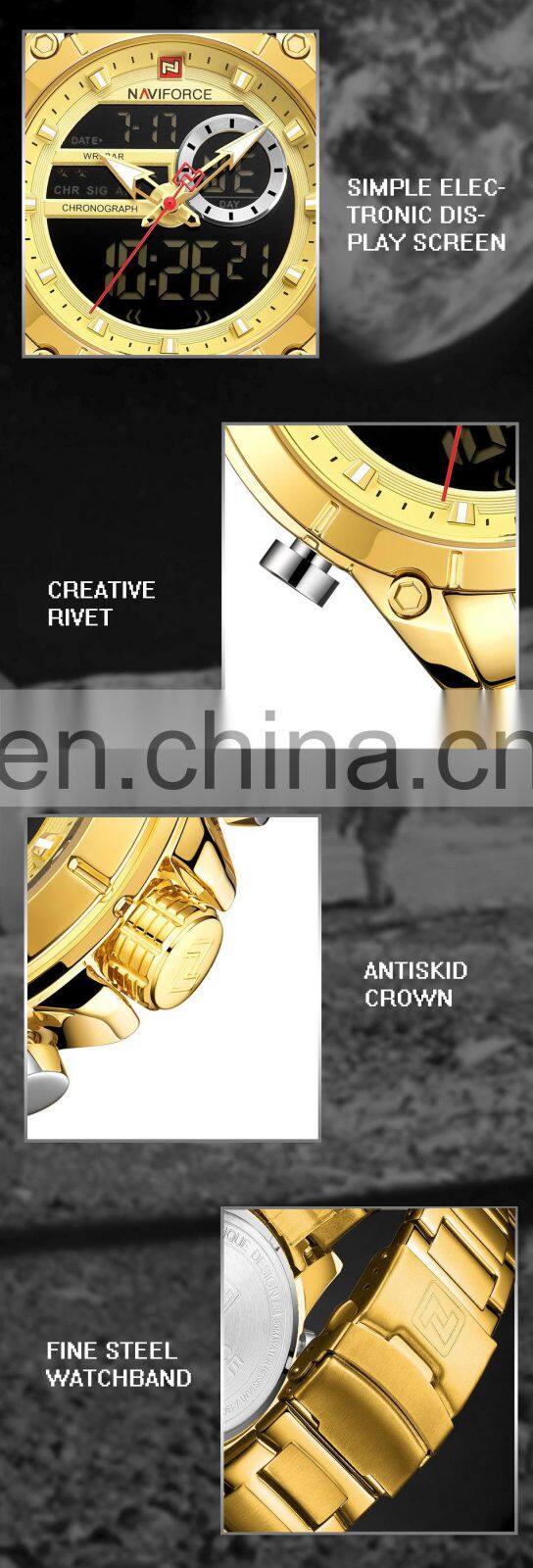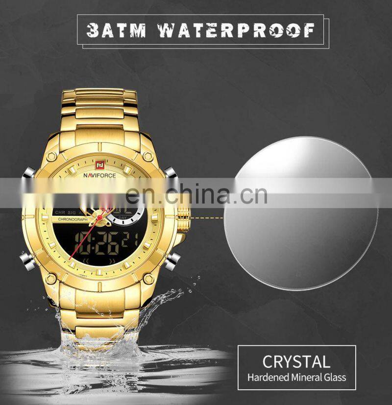 Naviforce Men Military Sport Wrist Watch Gold Quartz Steel Waterproof Dual Display Male Clock Watches Relogio Masculino 9163