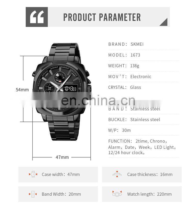 New Arrival Skmei 1673 Luxury Gold Digital Watch Stainless Steel Strap Wristwatch for Men