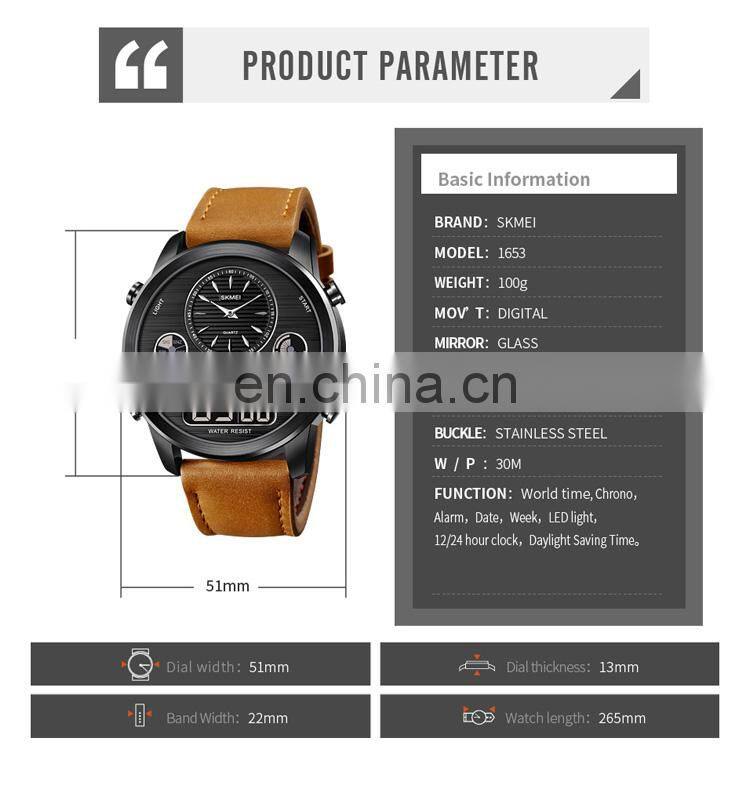 1653 Skmei High Quality Logo Brand Custom Wrist Watch Men Sport Military Watch Compass Dual Time Hour