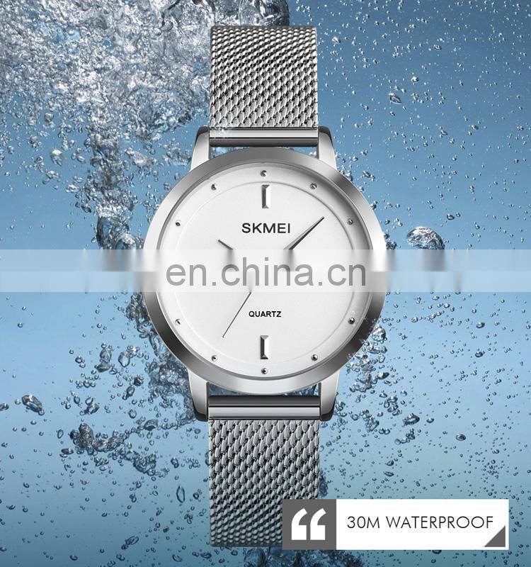 Minimalist Couple Quartz Watch Skmei 1181 Custom Logo Simple Mesh Stainless Steel Men Wristwatch Lady Jam Tangan Wristwatch