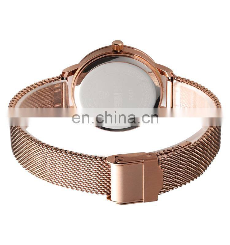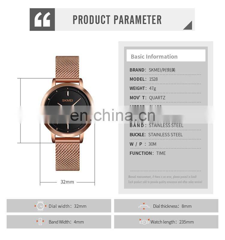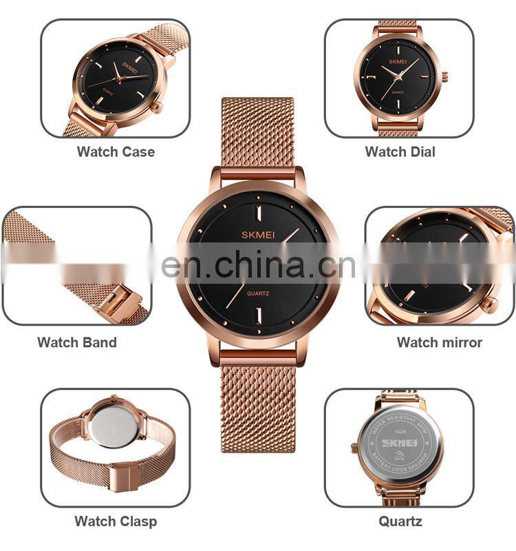 Home > Products > Quartz Watch > Skmei 1528 Fashion Rose Gold Mesh Strap Women Wrist Watch Japan Movt Stainless Steel Back Lady Quartz Watch