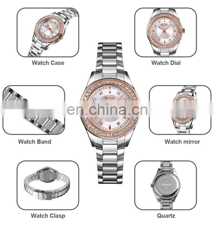 Skmei 1534 luxury diamond ladies wristwatches 30m waterproof custom logo women quartz watches | ||||||||