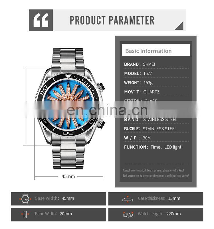 Home > Products > Quartz Watch > SKMEI Watch Factory 1677 Japan Movt Quartz Watch Price Stainless Steel Back Water Resistant 3atm