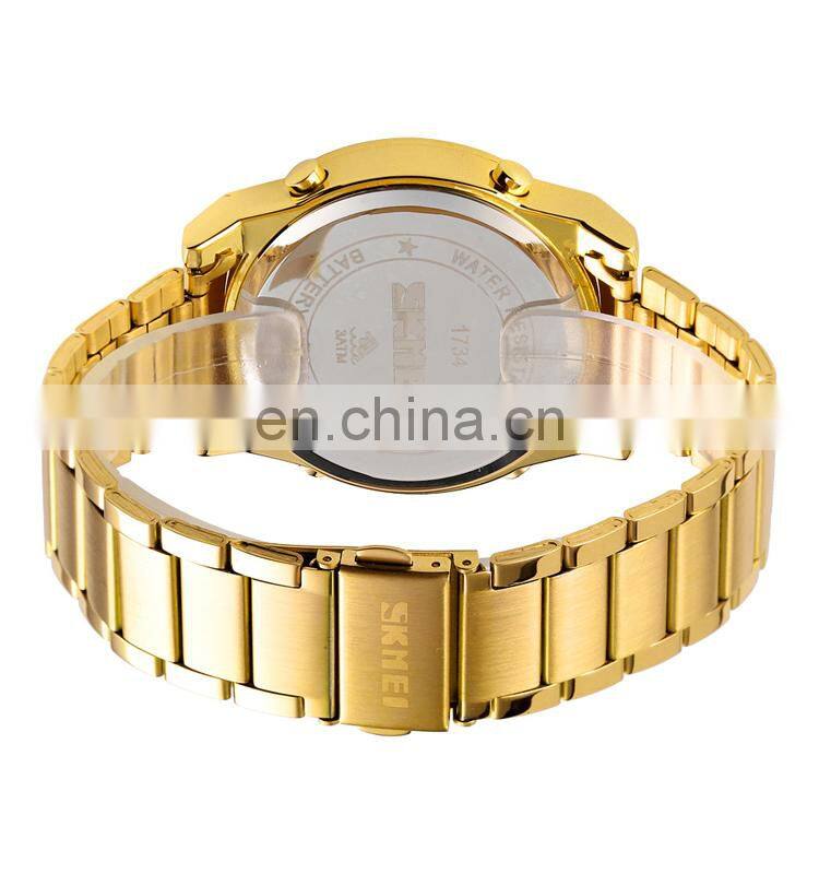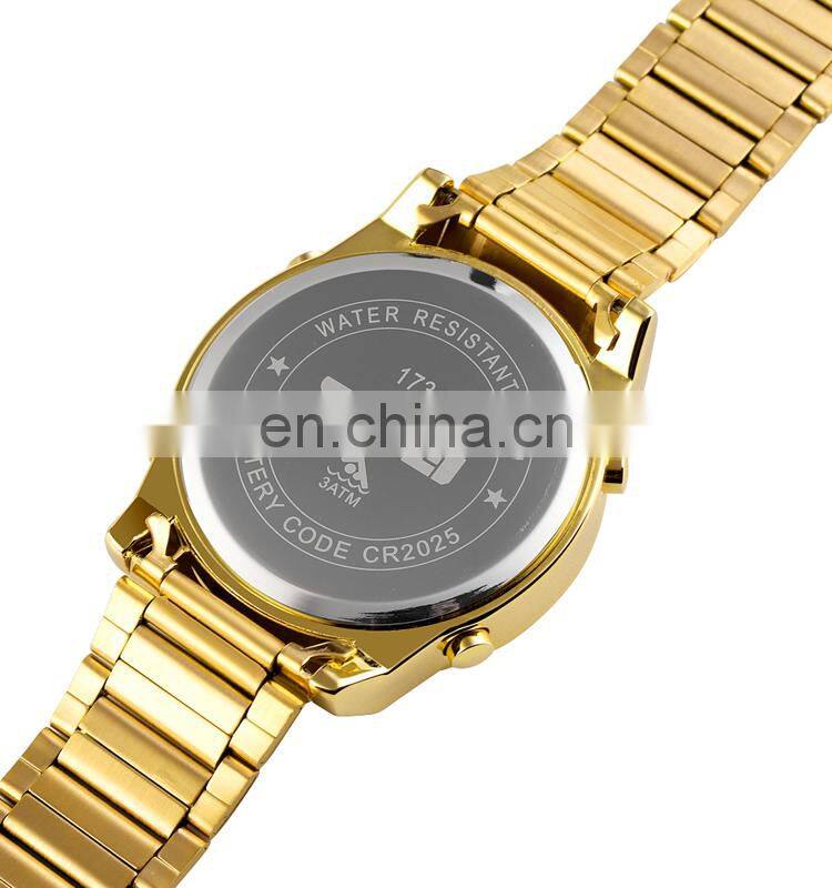Digital Analog Stainless Steel Band Waterproof Gold Plated Wrist Watches Skmei 1220