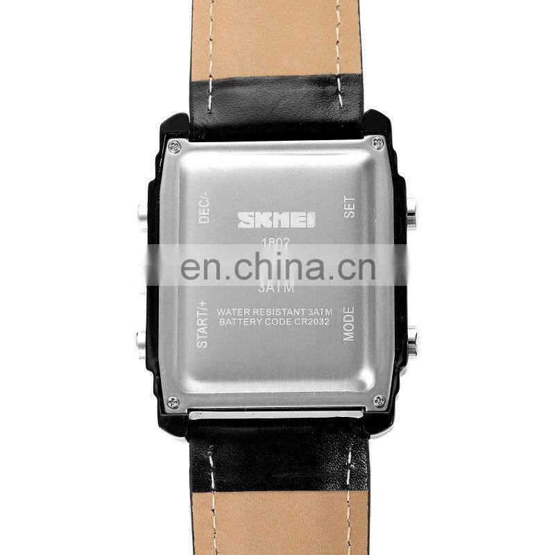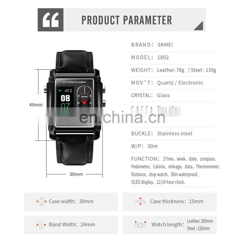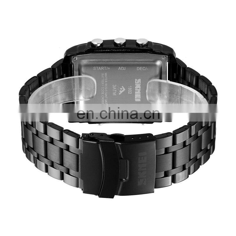 Skmei 1802 New Design Stainless Steel Watch Back Water Resistant 3atm Compass Black High Grade Watch Luxury Hand Wrist