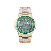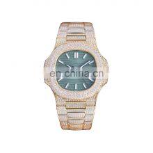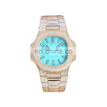 Custom Logo Luxury Diamond Gold Stainless Steel Case Waterproof Watch Clear Case Back Japanese Automatic Mechanical Watch